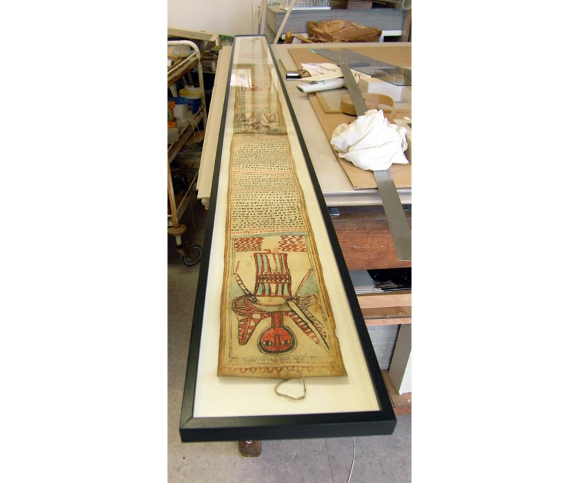 Exemple d'encadrement de très grand format : rouleau magique éthiopien